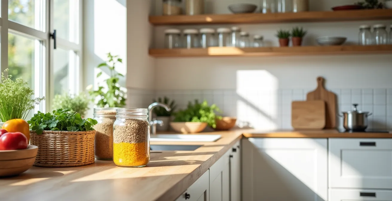 - Monat 7-9 (Die Küche): Revolutionieren Sie die Aufbewahrung. Ersetzen Sie Frischhalte- und Alufolie durch Bienenwachstücher und Glasbehälter. Beginnen Sie mit dem „Leaf-to-Root“-Kochen, um alle Teile von Lebensmitteln zu verwerten.