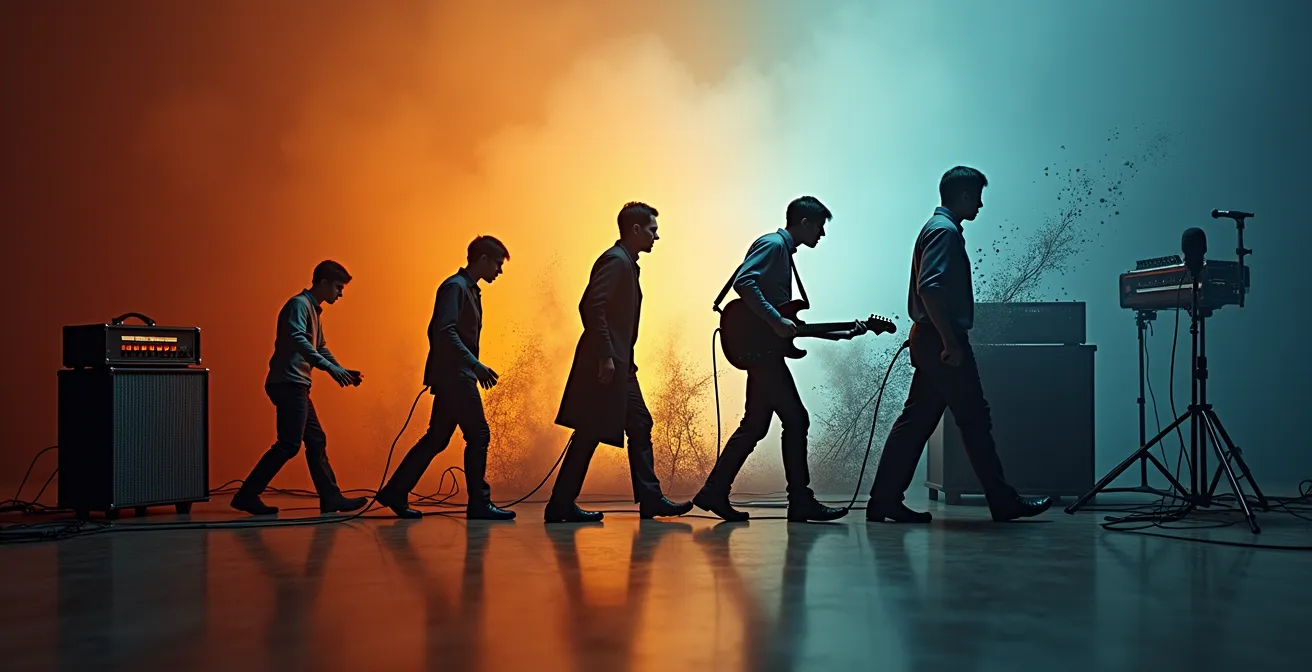Die folgende Analyse führt durch die entscheidenden Phasen dieser Entwicklung. Jeder Abschnitt beleuchtet ein zentrales Spannungsfeld und zeigt, wie Musik als Ausdruck und zugleich als treibende Kraft gesellschaftlicher Veränderung fungiert.